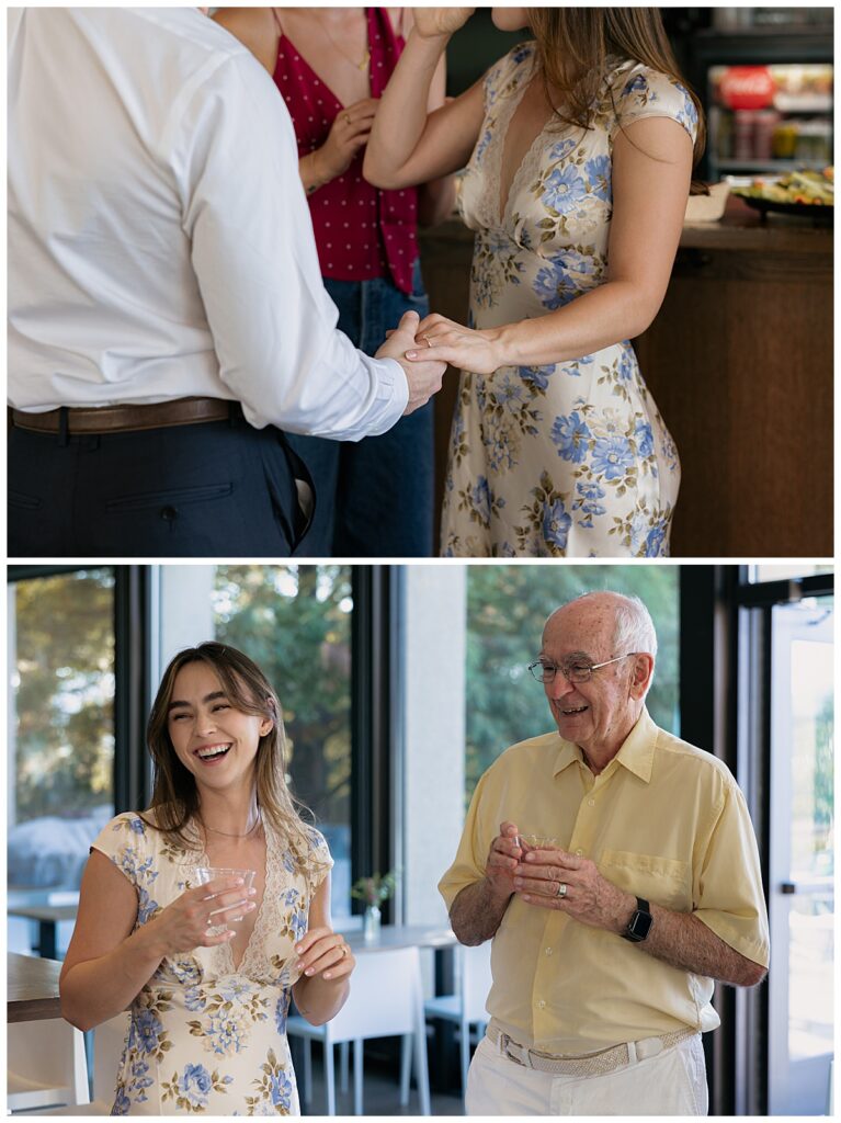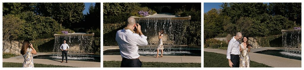 Instead of photographing the proposal itself, I ended up documenting their engagement party in Des Moines. There was laughter, hugs, and that unmistakable just-got-engaged energy buzzing through the room. At one point, we snuck away to the Botanical Garden for fresh engagement photos—and it was SO much fun.